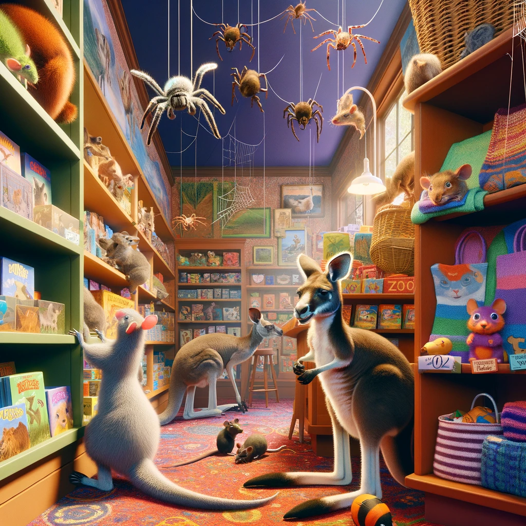 I en djuraffär finns det 15 djur. Det är dubbelt så många spindlar som möss. Det finns också kängurur som hoppar omkring. Tillsammans finns det 86 djurben. Hur många kängurur finns det?
